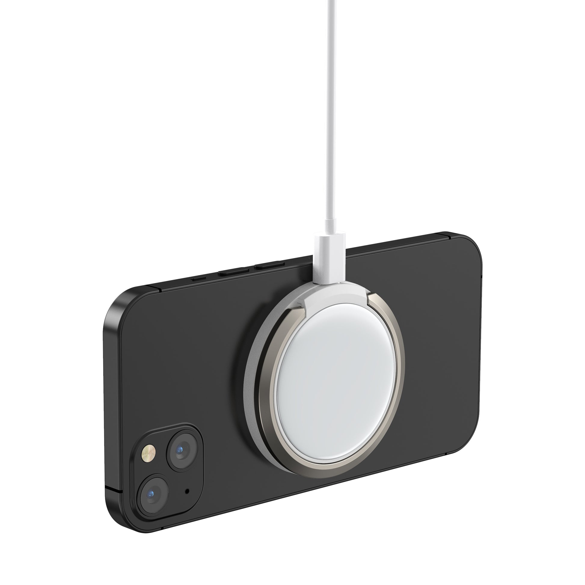 Fast wireless charging with a built-in ring stand for secure placement and hands-free viewing.